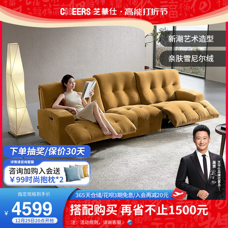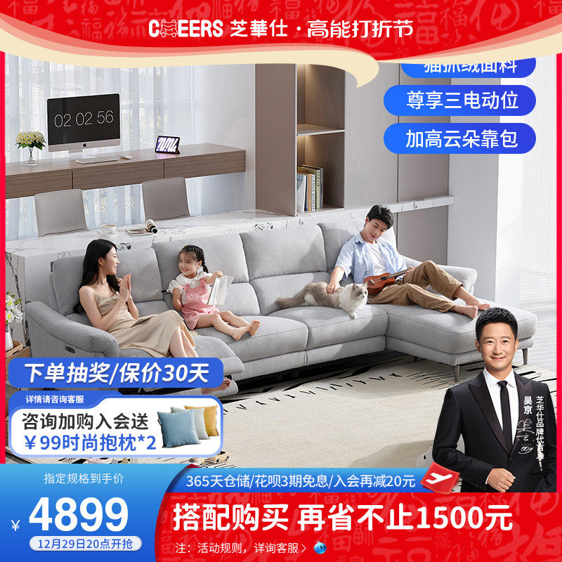 芝华仕头等舱布艺电动功能现代简约客厅棉花糖猫抓绒沙发30128