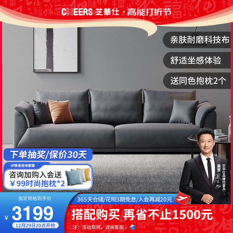 芝华仕北欧简约现代科技布沙发客厅家具小户型三人位四人位布艺沙