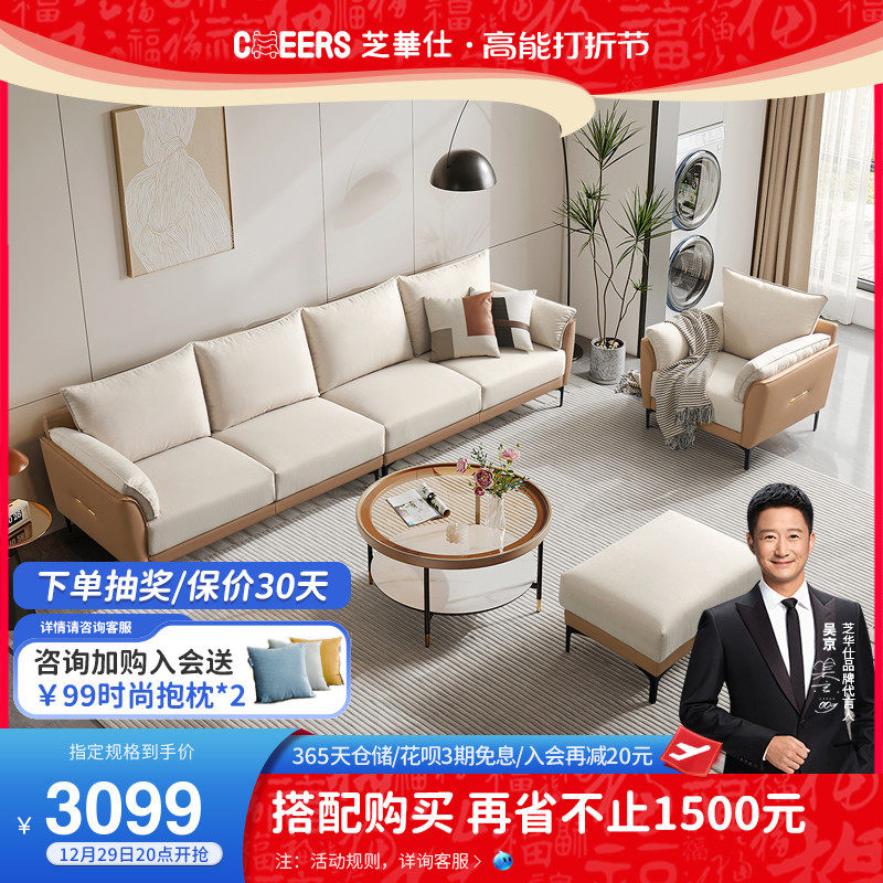 芝华仕意式极简沙发科技布艺现代简约大坐深客厅中大户型6301