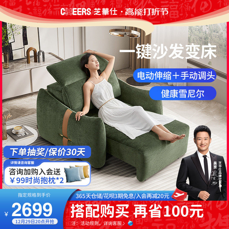 芝华仕头等舱科技布艺电动功能客厅大象耳朵伸缩两用沙发床40272