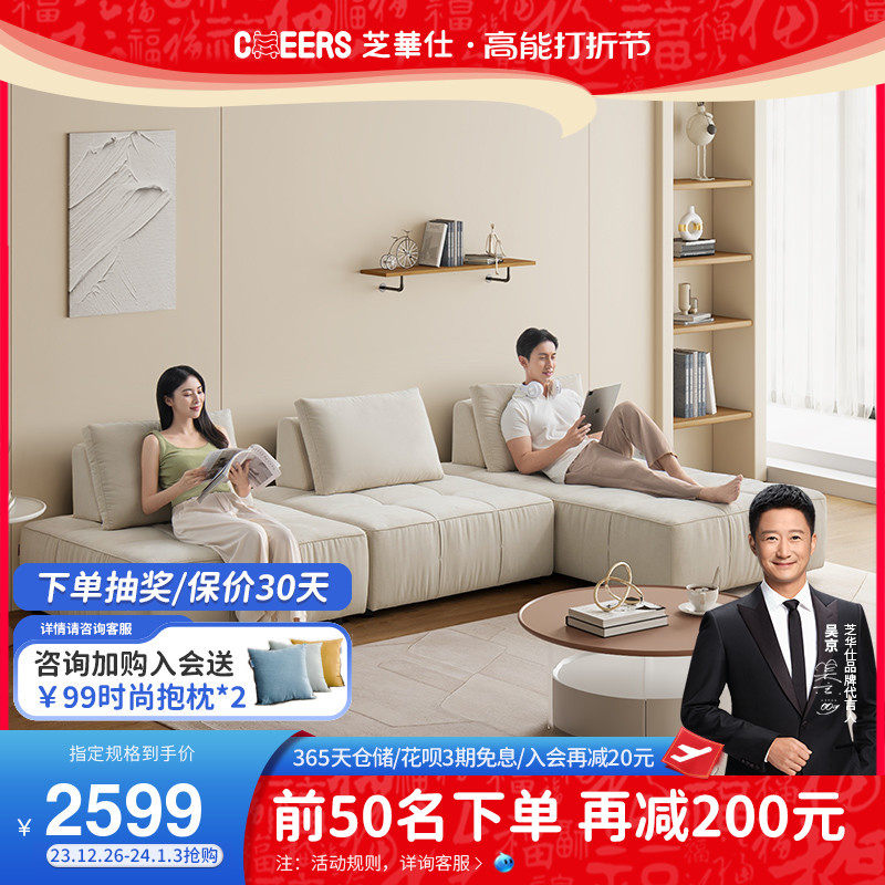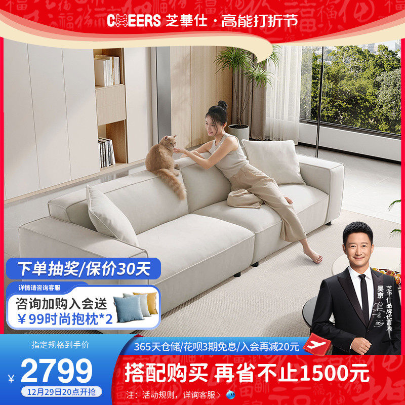 芝华仕头等舱科技布艺功能沙发奶油风现代简约豆腐块沙发 50921