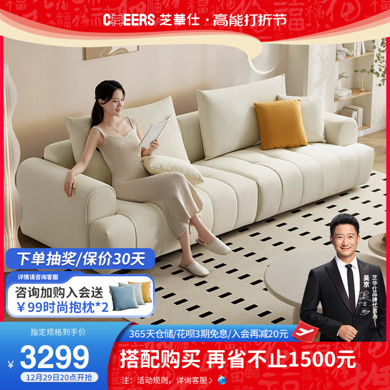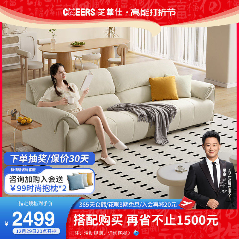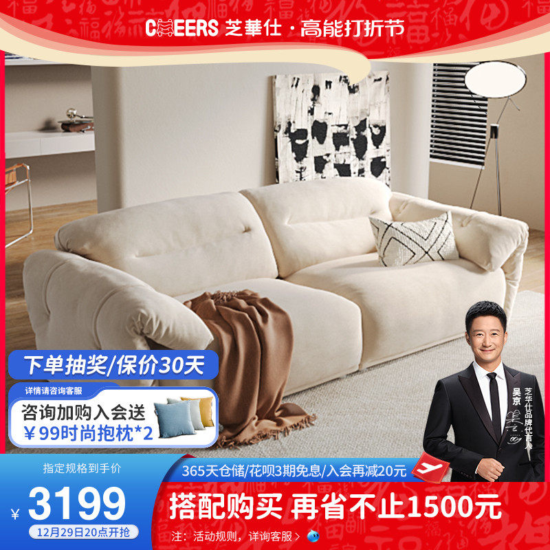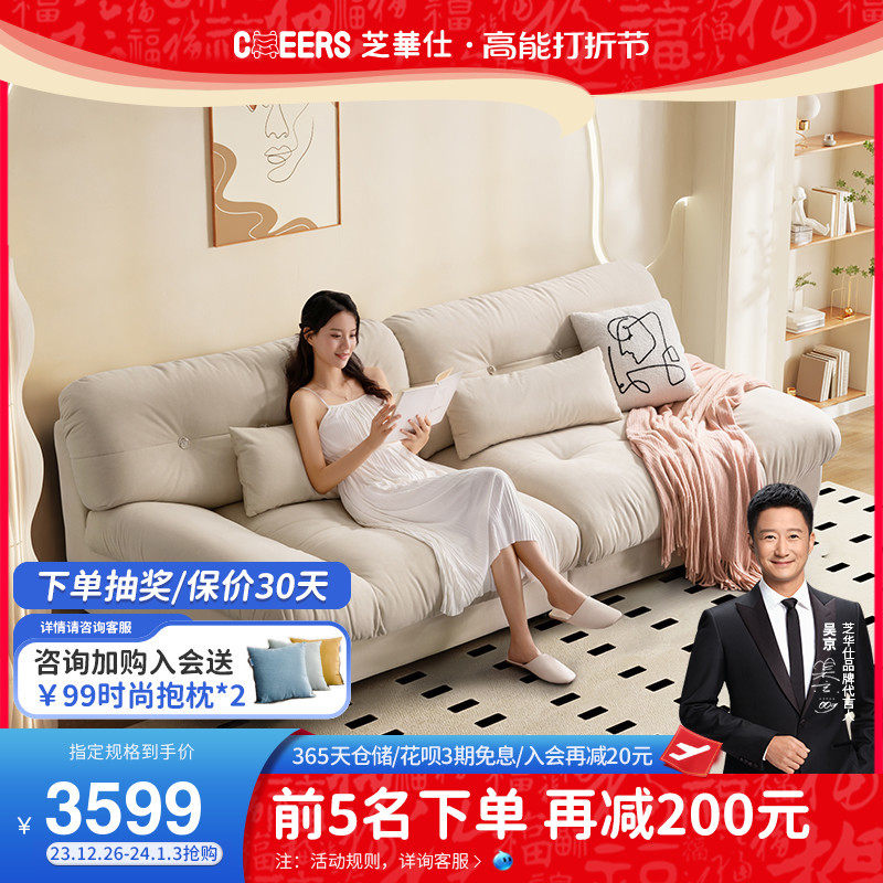 芝华仕头等舱奶油风科技布艺云朵沙发小户型客厅直排三人位2059