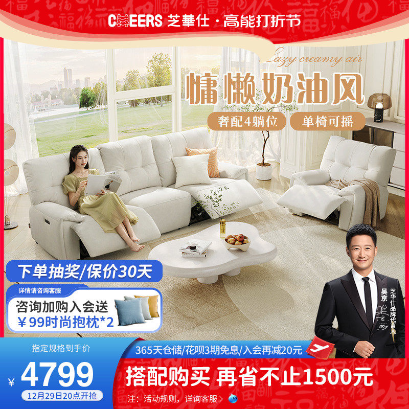 芝华仕头等舱科技布艺沙发客厅简约电动功能沙发直排奶油风30107