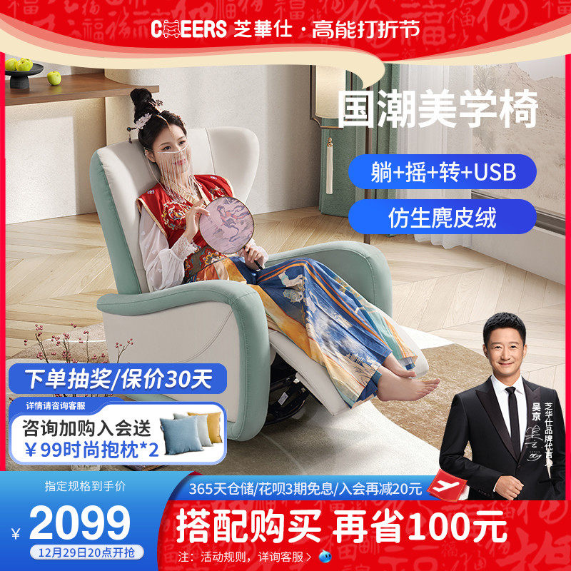 芝华仕头等舱布艺单人沙发电动可躺可转休闲午休电脑椅老板椅4037
