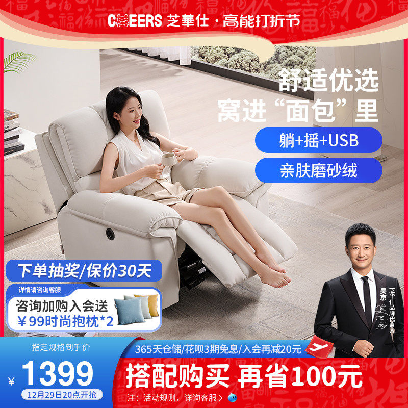 芝华仕头等舱布艺单人沙发客厅奶油风电动可躺云朵懒人单椅30068