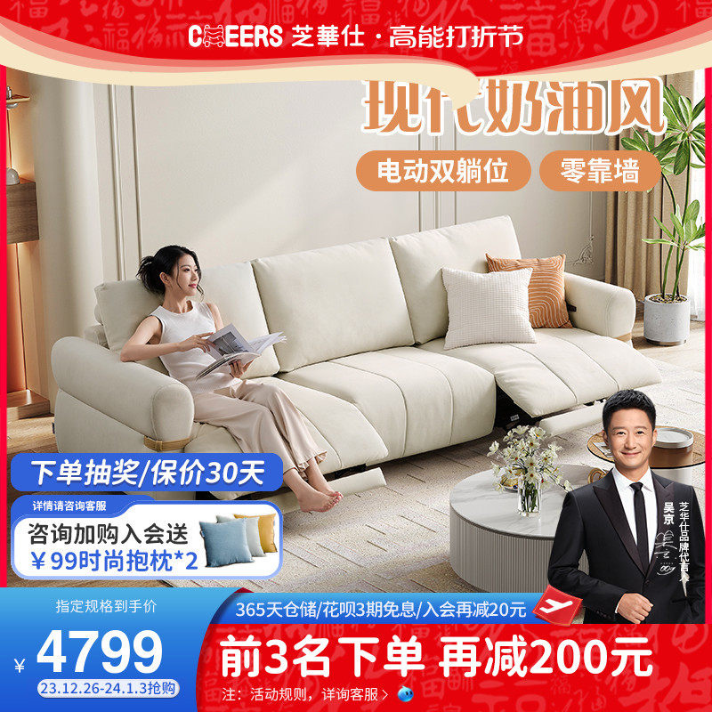 芝华仕头等舱猫抓布艺沙发奶油风零靠墙电动功能泡芙沙发30105