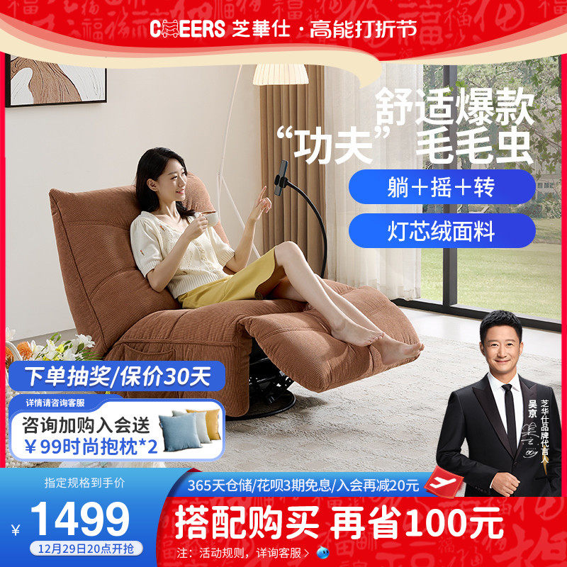 芝华仕头等舱布艺功能沙发现代简约客厅毛毛虫午睡懒人座椅