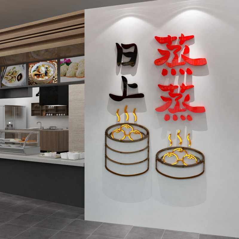 早餐店墙面装饰包子馒头店铺广告海报墙贴纸画蒸蒸日上文化墙创意