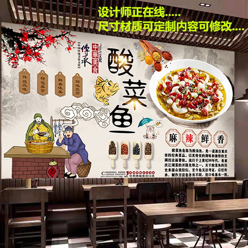 定制正宗酸菜鱼饭店广告防水背胶墙面装饰画海报贴纸自粘高清墙贴