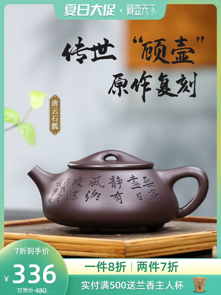 藏壶天下宜兴紫砂壶纯手工刻绘家用泡茶壶紫砂茶具复刻景舟石瓢壶