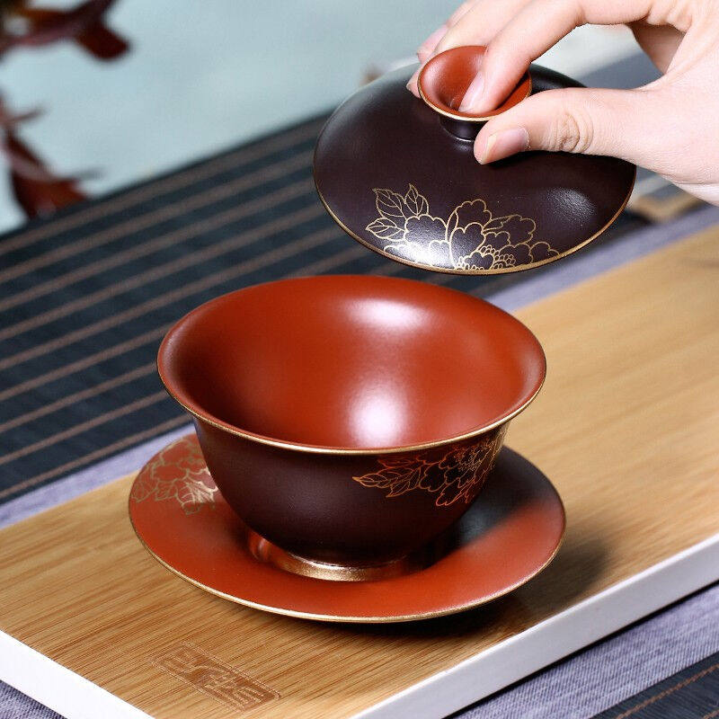 藏壶天下紫砂三才盖碗单个茶碗带盖不烫手敬茶杯紫砂杯茶具三泡台