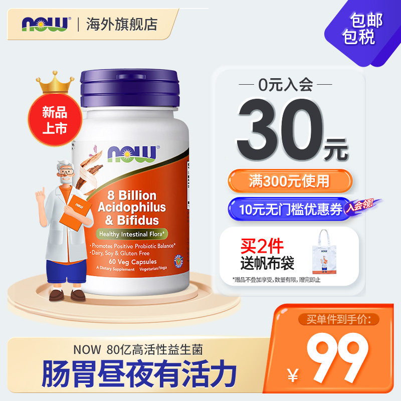 NowFoods美国进口诺奥益生菌8billion大人调理胃肠道80亿胶囊