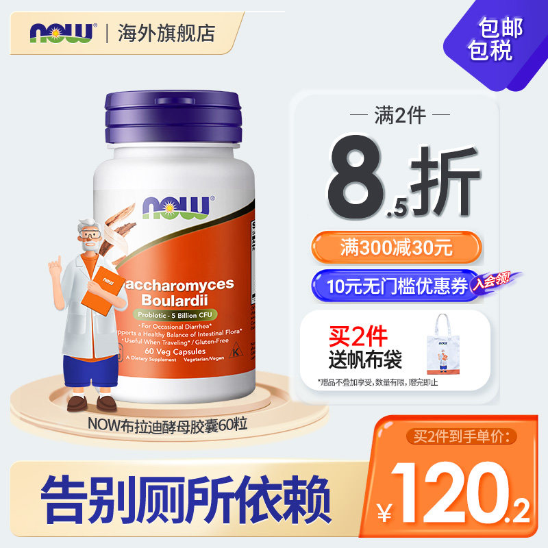 nowfoods诺奥布拉迪酵母菌益生菌大人肠胃肠道布拉氏宠物猫咪狗狗