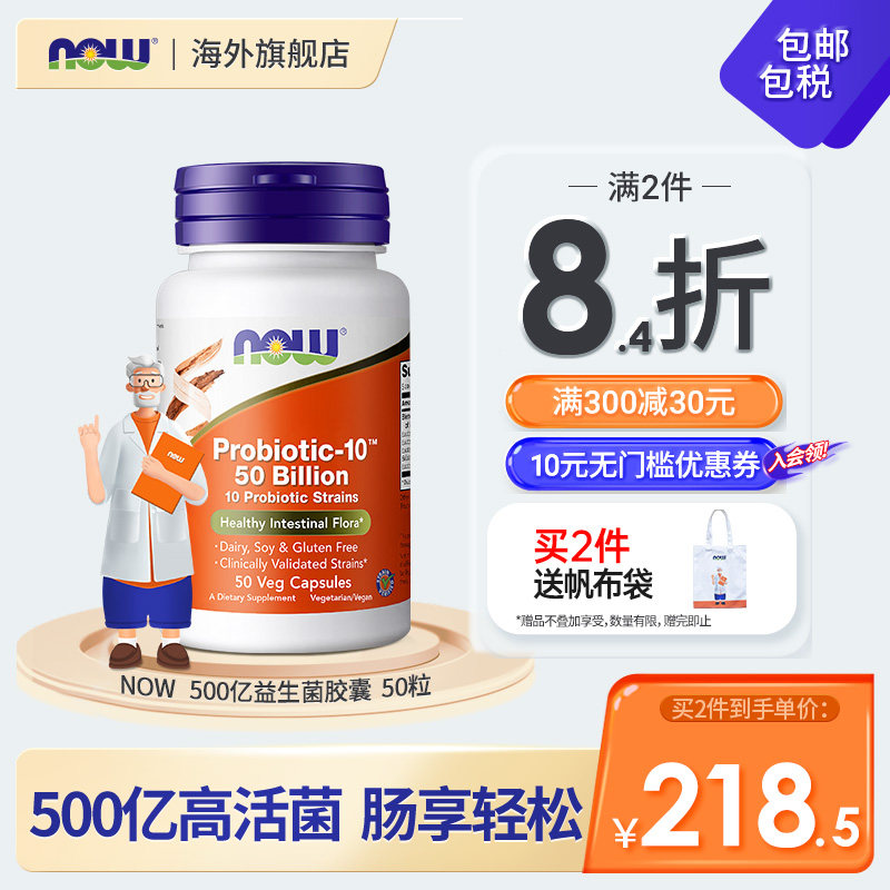 NOW Foods诺奥500亿probiotics益生菌胶囊健康肠道肠胃大人益生元