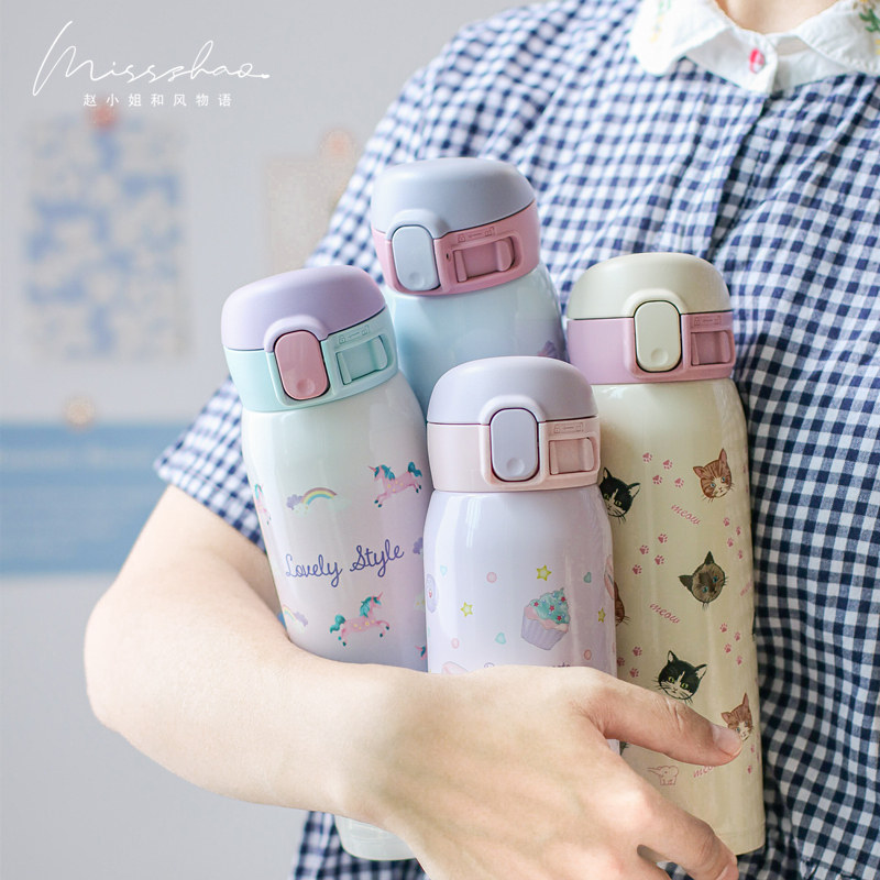 新款日本象印保温杯女生超轻可爱卡通不锈钢学生水杯象牌印象WG48