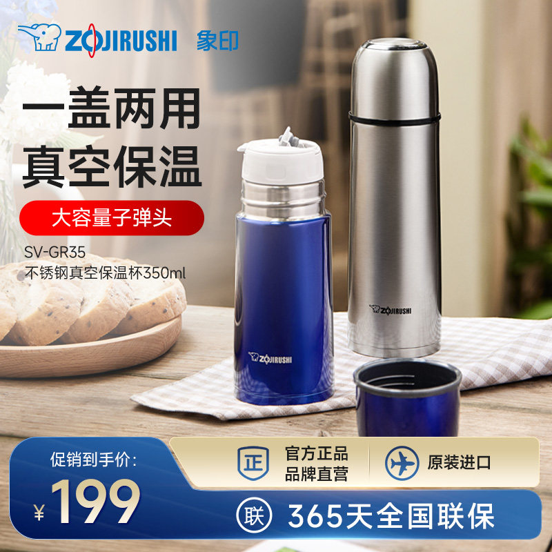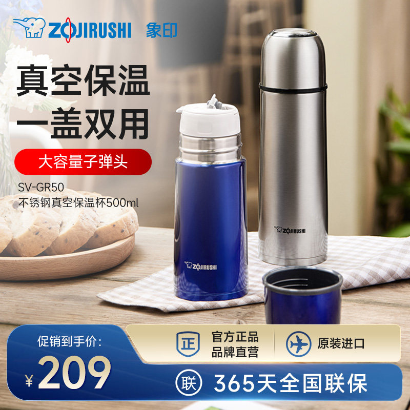 日本象印保温杯不锈钢真空子弹头办公杯SV-GR50/35自带小杯子水杯