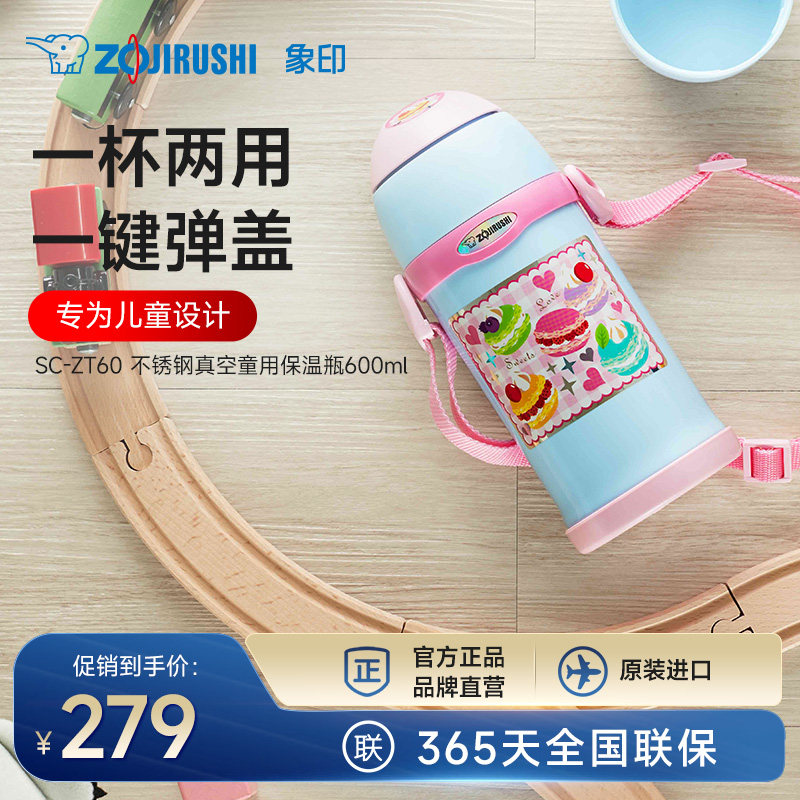 象印原装进口ZT60儿童保温杯儿童水杯304不锈钢大容量吸管杯600ml