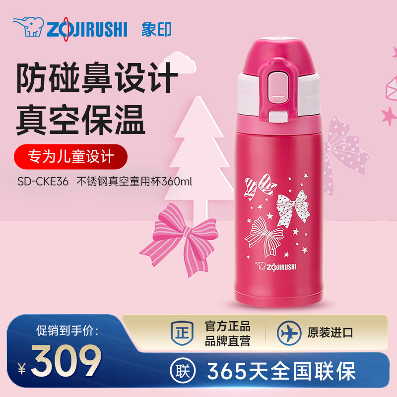 象印儿童吸管杯保温杯学饮水杯CKE36不锈钢杯子上学专用 360ml