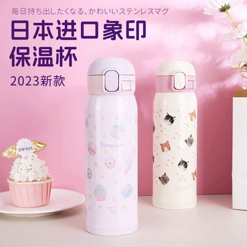 【自营】象印保温杯女2023新款男不锈钢进口可爱插画印花便携水杯