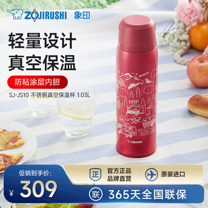 象印保温杯女生JS10便携304不锈钢大容量真空保温水杯女款 1.03L