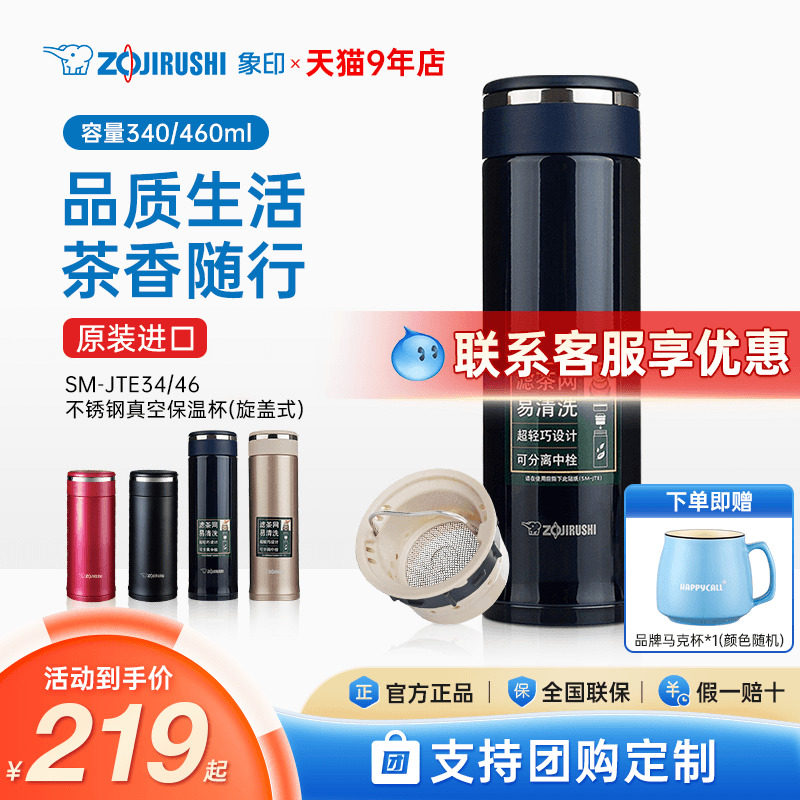 象印保温杯原装进口男士茶水分离带茶漏便携泡茶杯子水杯JTE34/46