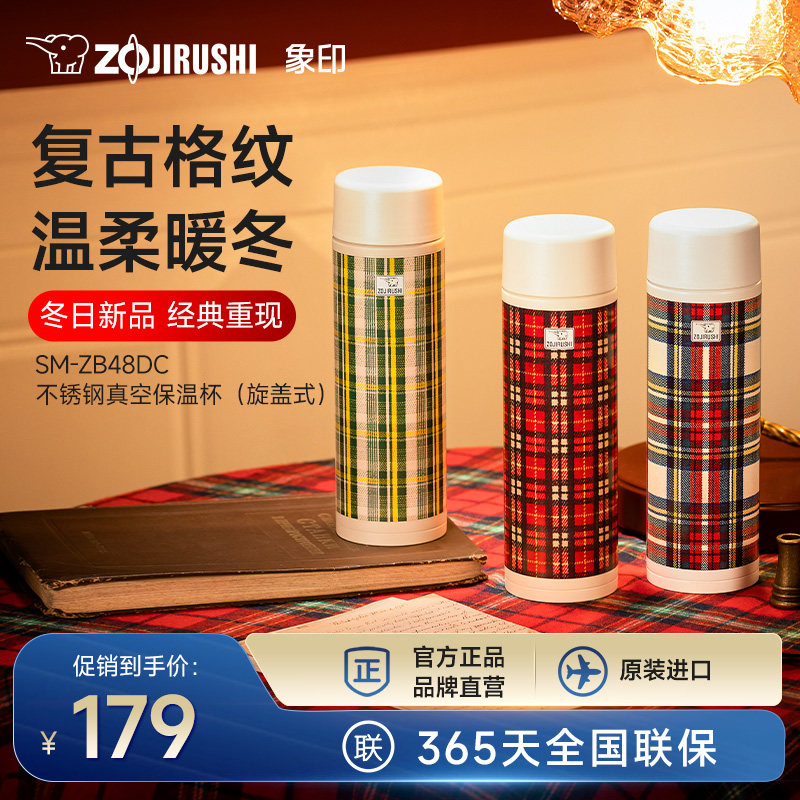 象印ZB48DC保温杯复古格纹便携不锈钢水杯大容量男女生杯子480ml