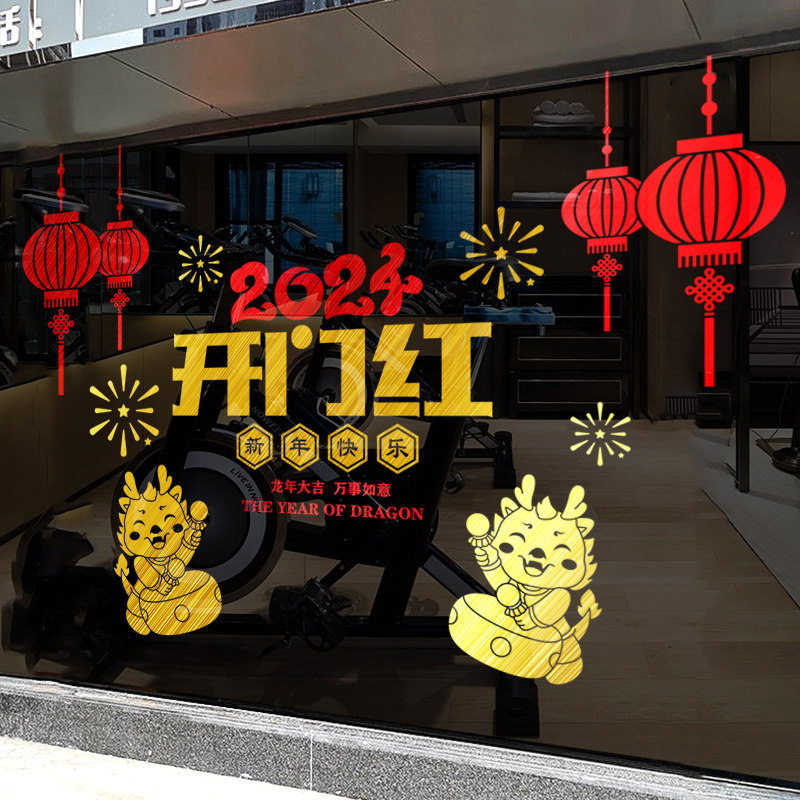 2024新年龙年开门红玻璃橱窗贴纸保险公司银行过年装饰春节墙贴画