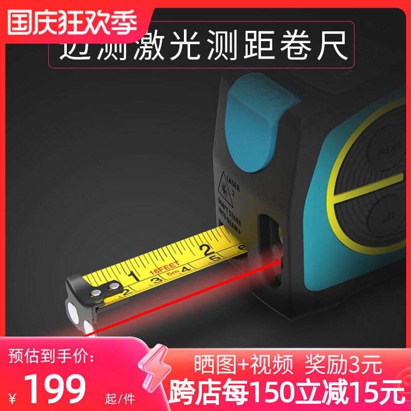 迈测三合一激光卷尺测距仪红外线测量电子尺高精度数显量房仪
