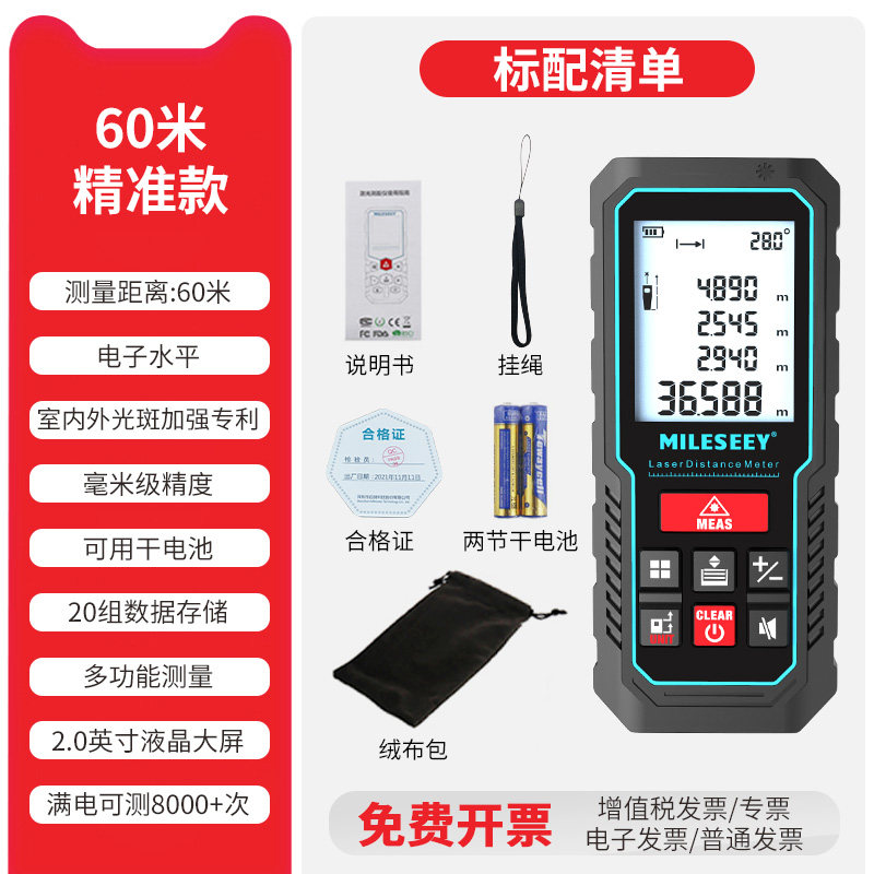 新品迈测高d精度手持激光测距仪量房神器红外线测量尺电子尺距离