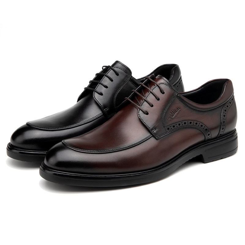 金利来男鞋2023新品擦色系带商务正装皮鞋男耐磨舒适三接头牛津鞋