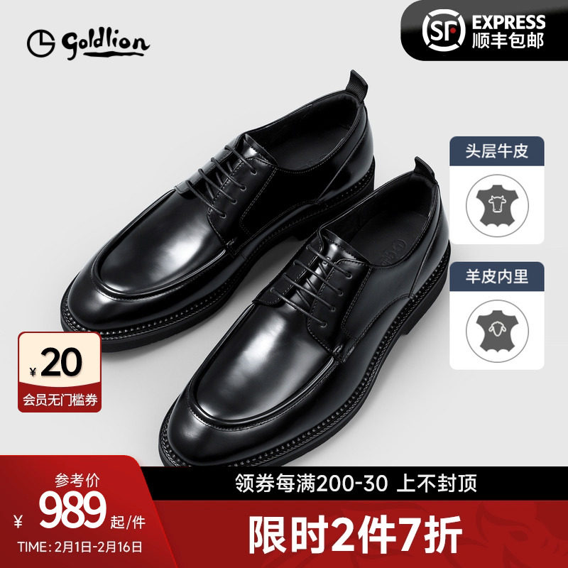 金利来男鞋秋季真皮商务正装鞋男士系带大头宽版皮鞋男厚底欧版鞋