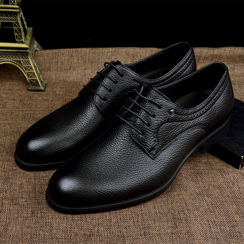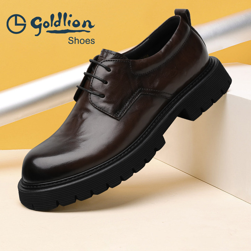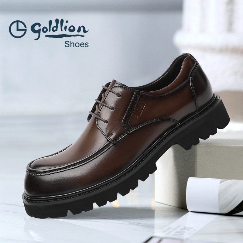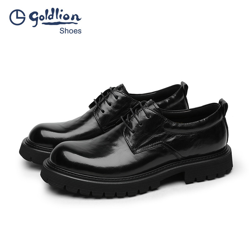 金利来男鞋秋季新款厚底手抓纹真皮商务正装皮鞋男士系带德比鞋