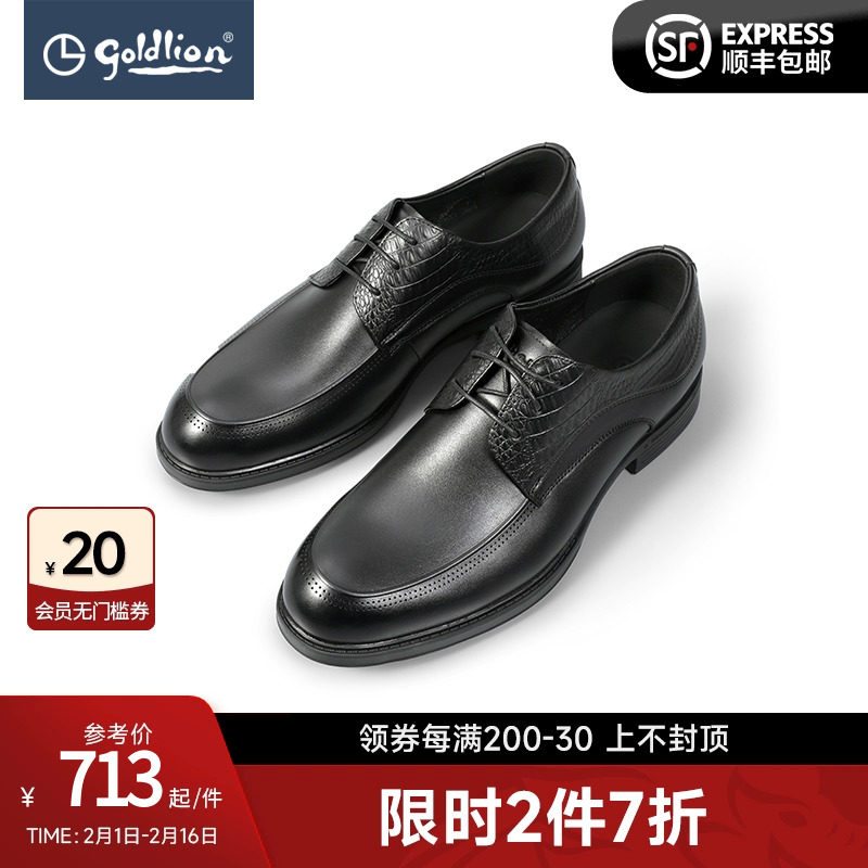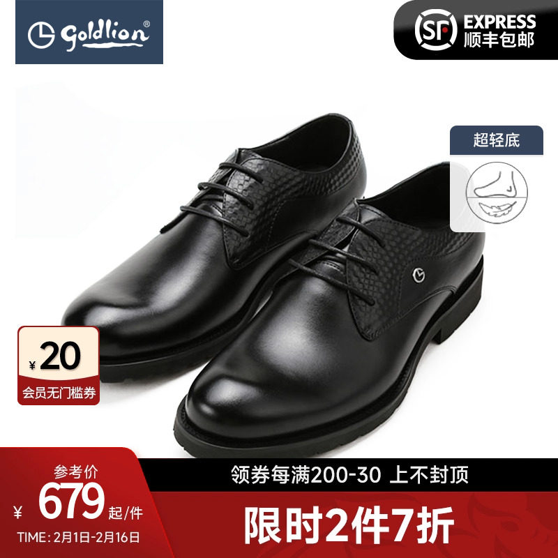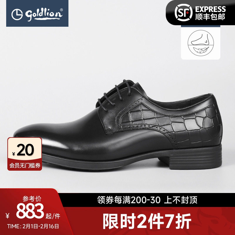 金利来男士皮鞋新款商务正装鞋男士透气压花牛皮鞋真皮轻便德比鞋