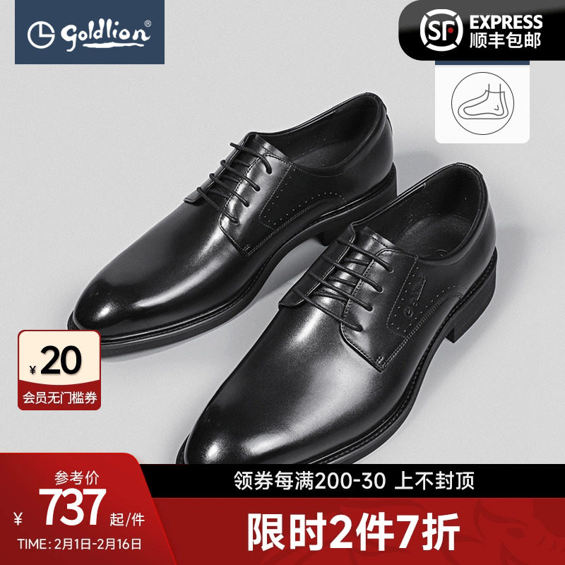 金利来男鞋2023秋季新款商务正装系带皮鞋男真皮软底休闲男士婚鞋