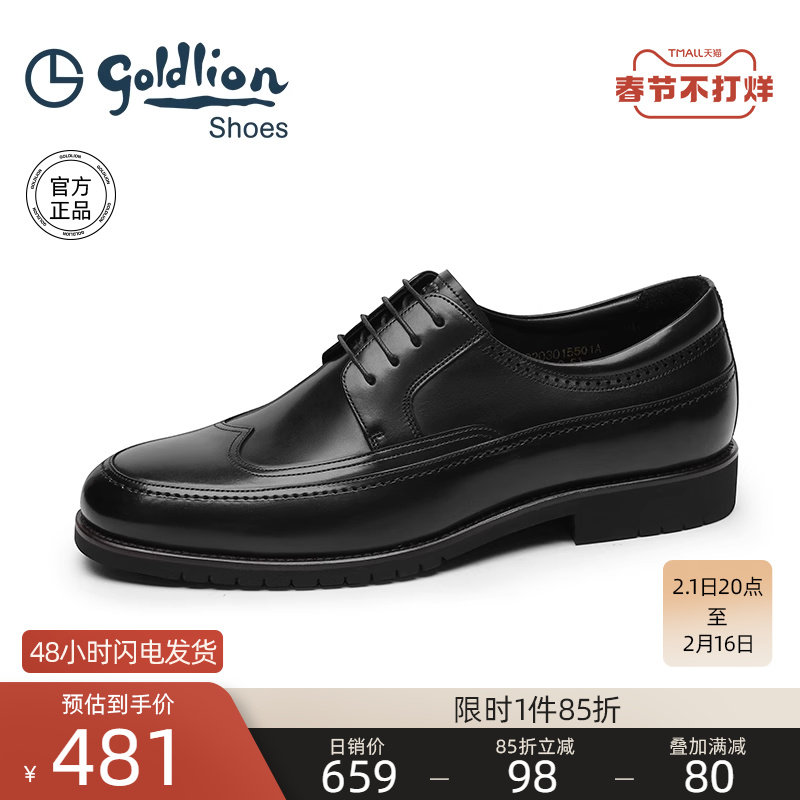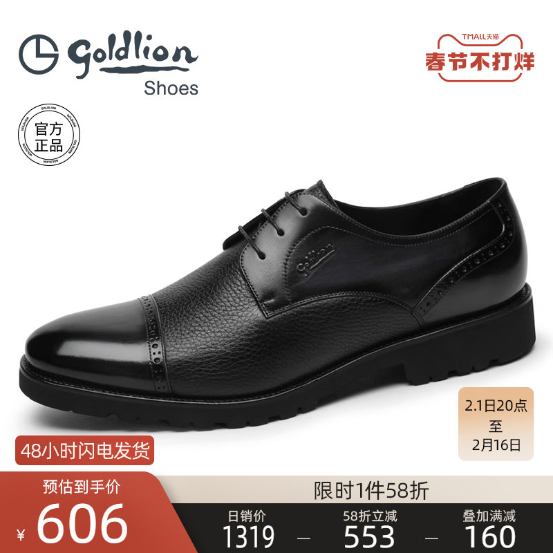 金利来男鞋 春夏新款时尚男士商务正装男鞋德比鞋雕花布洛克皮鞋