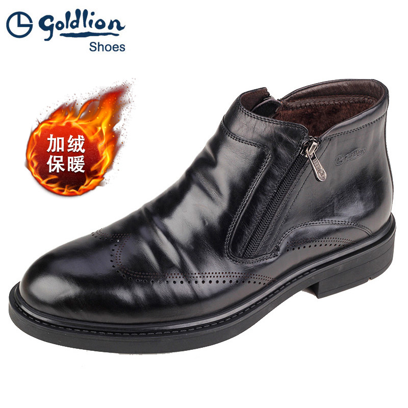 金利来男鞋冬季棉鞋男士靴子加绒保暖真皮短靴棉皮鞋男靴系带正装