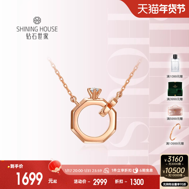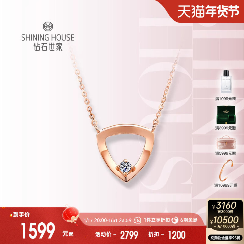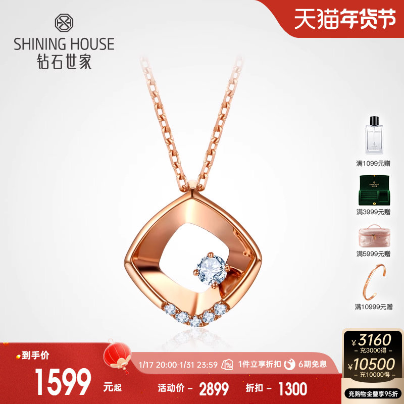 钻石世家18k金钻石轻奢套链 几何图形玫瑰金镶钻项链女