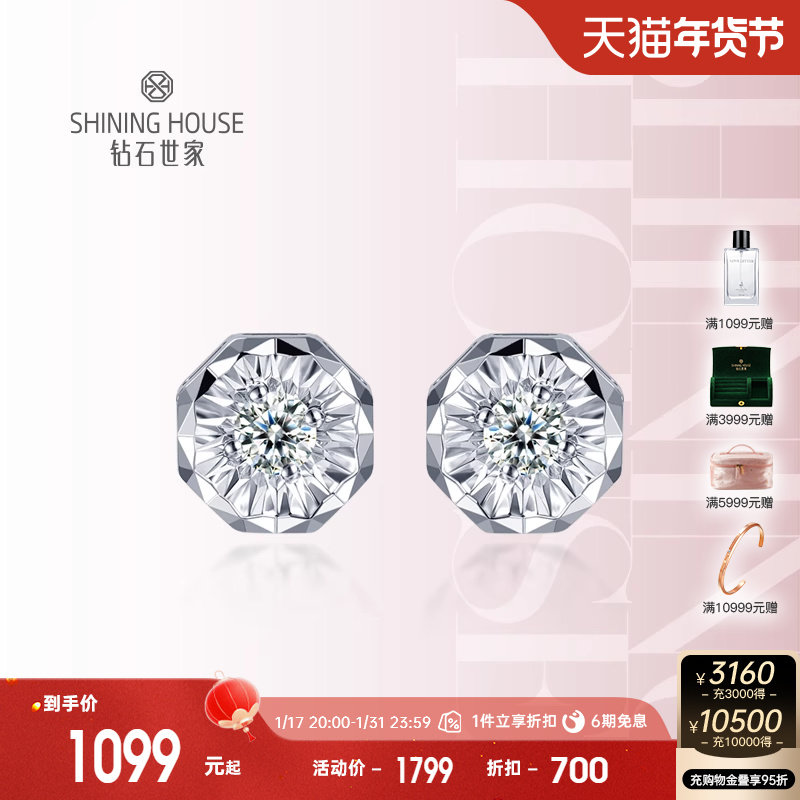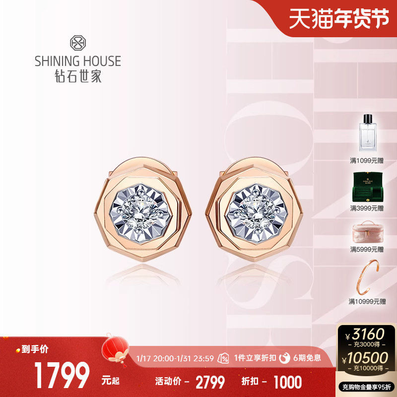 【分期免息】钻石世家星辰系列 18k金钻石耳钉八边形显钻耳饰