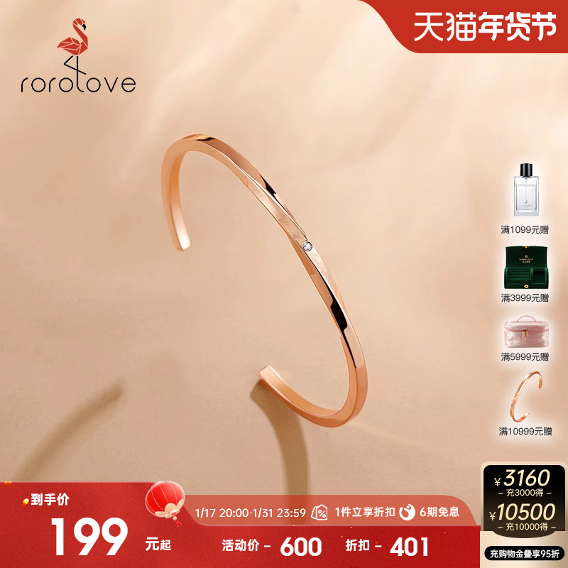 钻石世家旗下rorolove钻石合金手镯 玫瑰金色钻石手镯