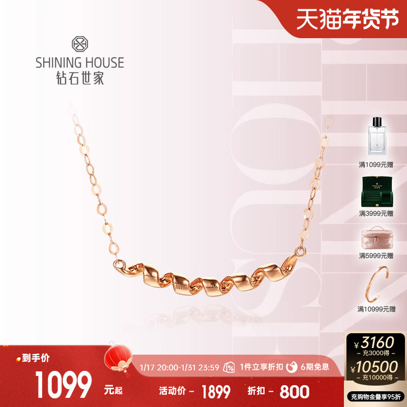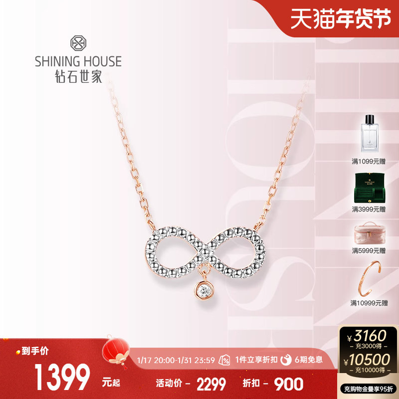 钻石世家18K金钻石项链女 爱无限锁骨链玫瑰金套链新品