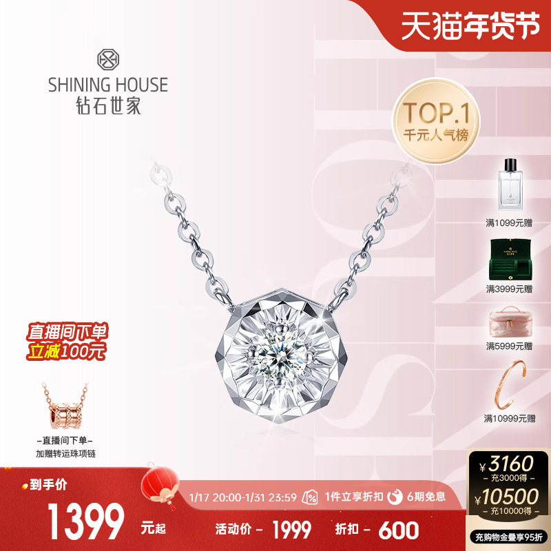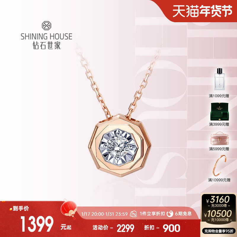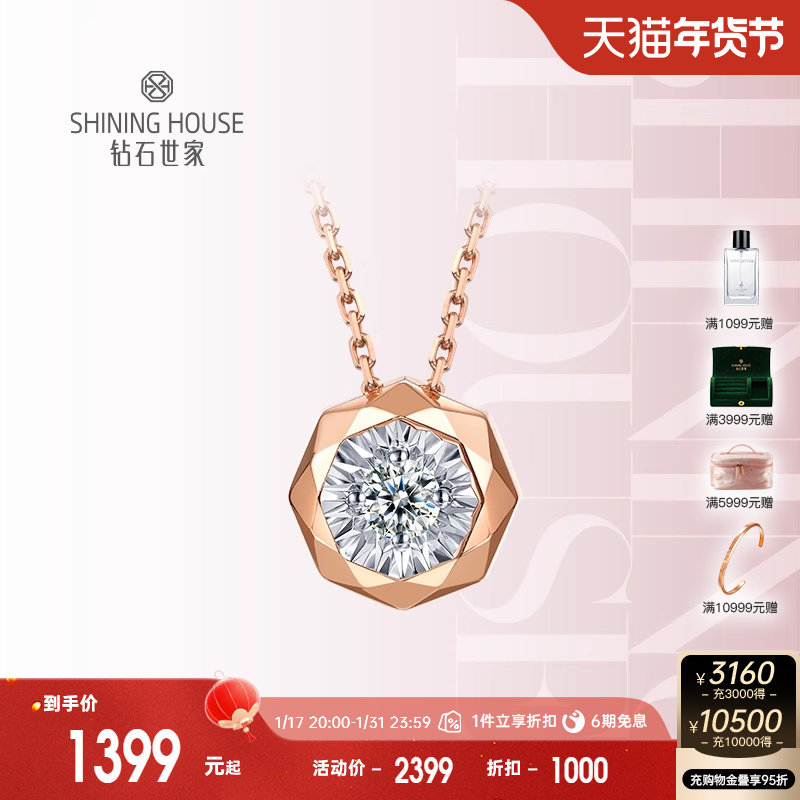 【分期免息】钻石世家星辰系列 18k金钻石项链八边形显钻颈饰