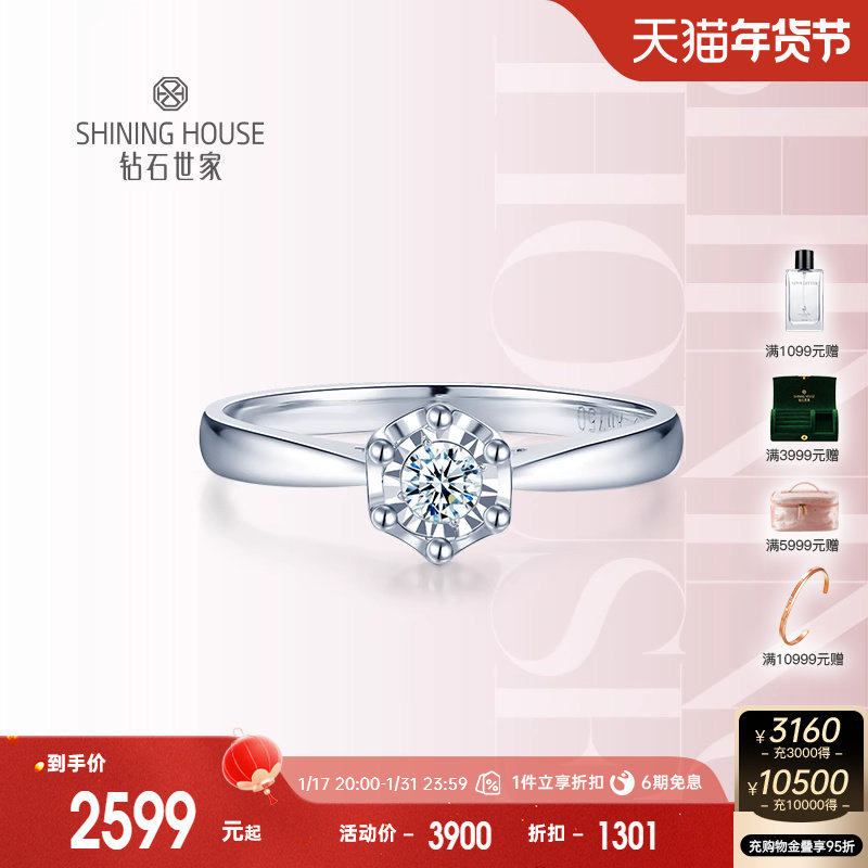 【分期免息】钻石世家18K金经典六爪钻戒女正品显钻求婚钻石戒指