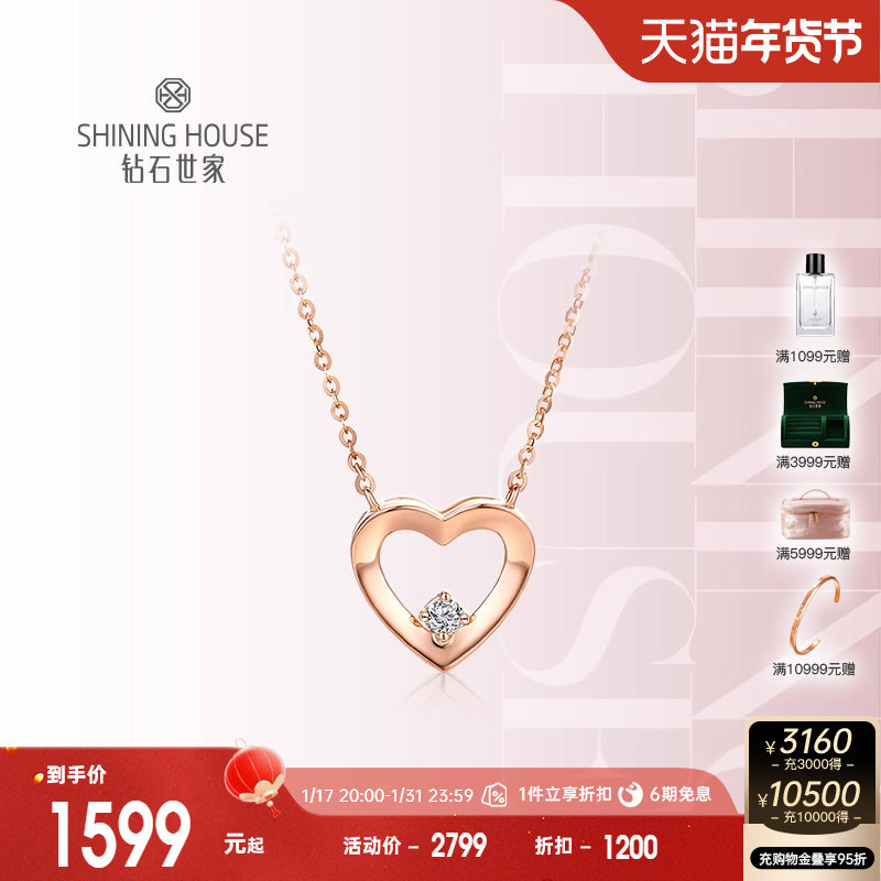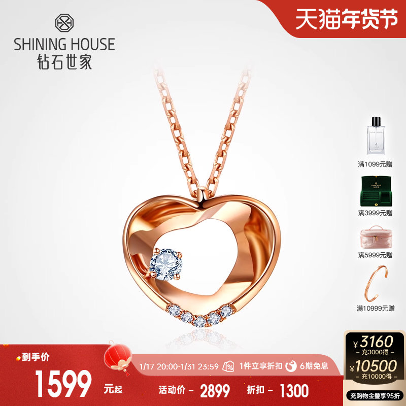 钻石世家18k金钻石轻奢套链 心形玫瑰金镶钻项链女简约