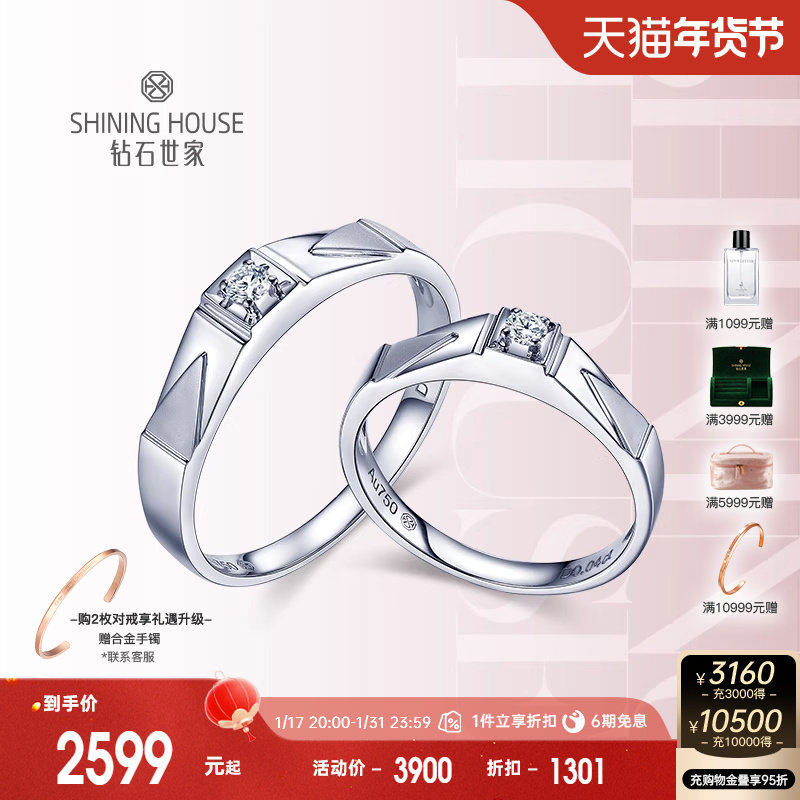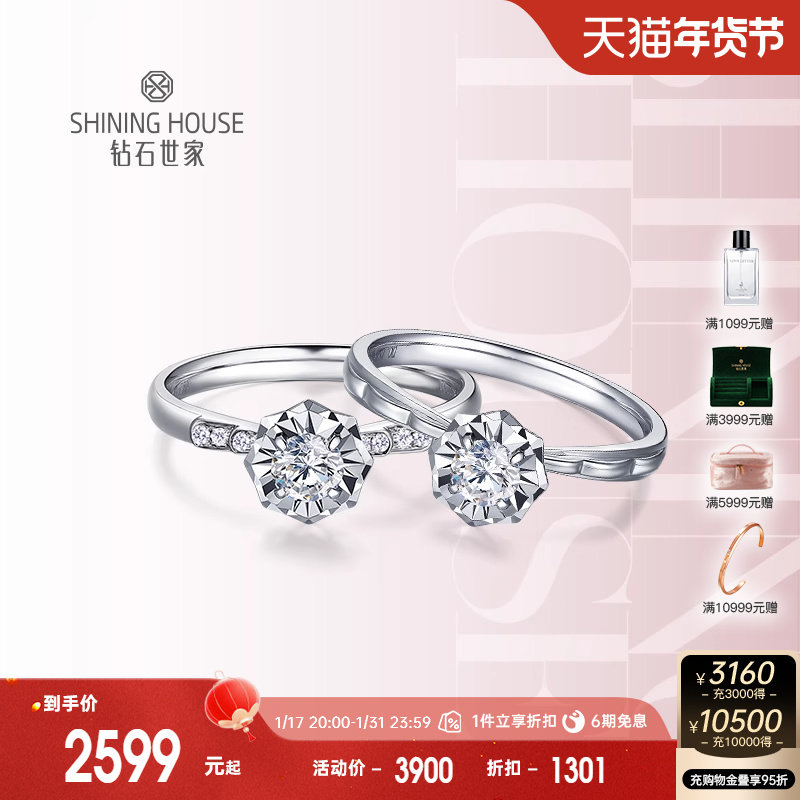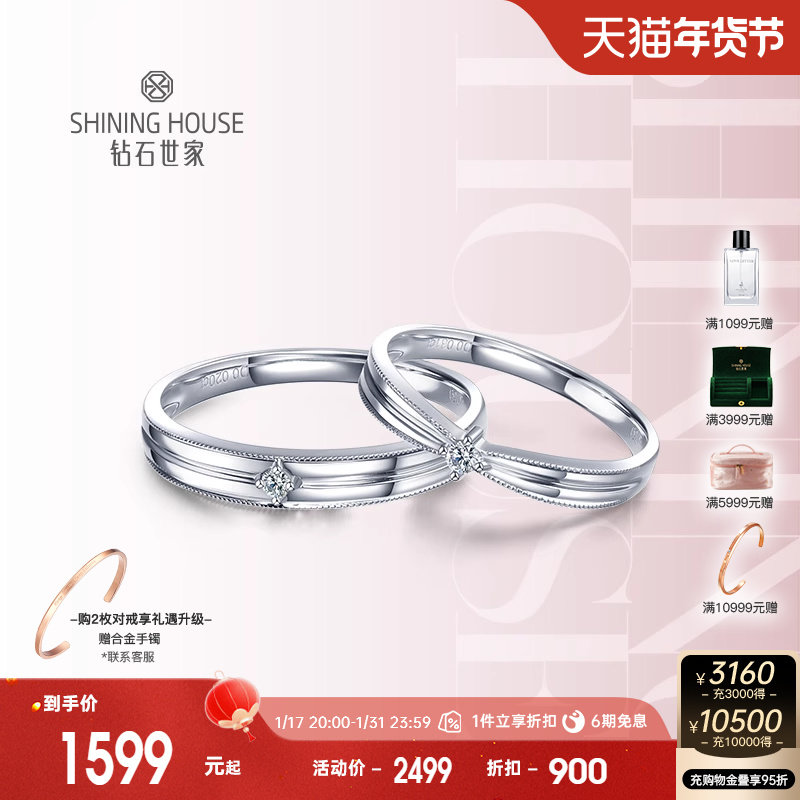【分期免息】钻石世家18K金钻石戒指至爱结婚戒指情侣对戒