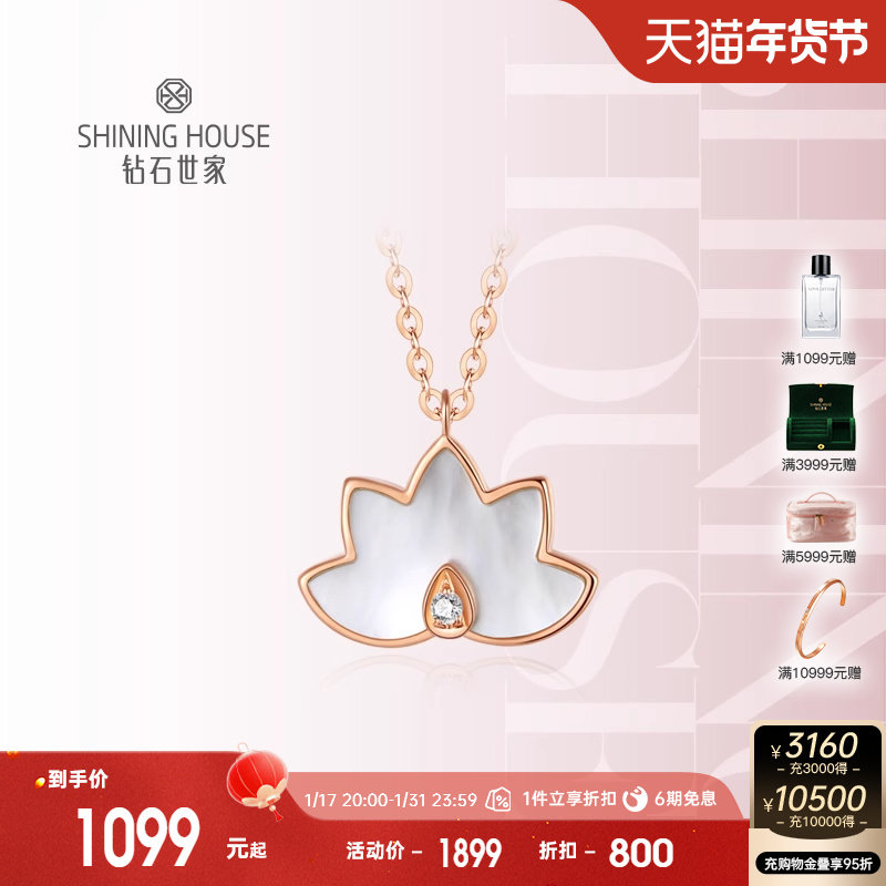 钻石世家18k金钻石贝壳项链女 玫瑰金莲花形套链新品锁骨链颈饰