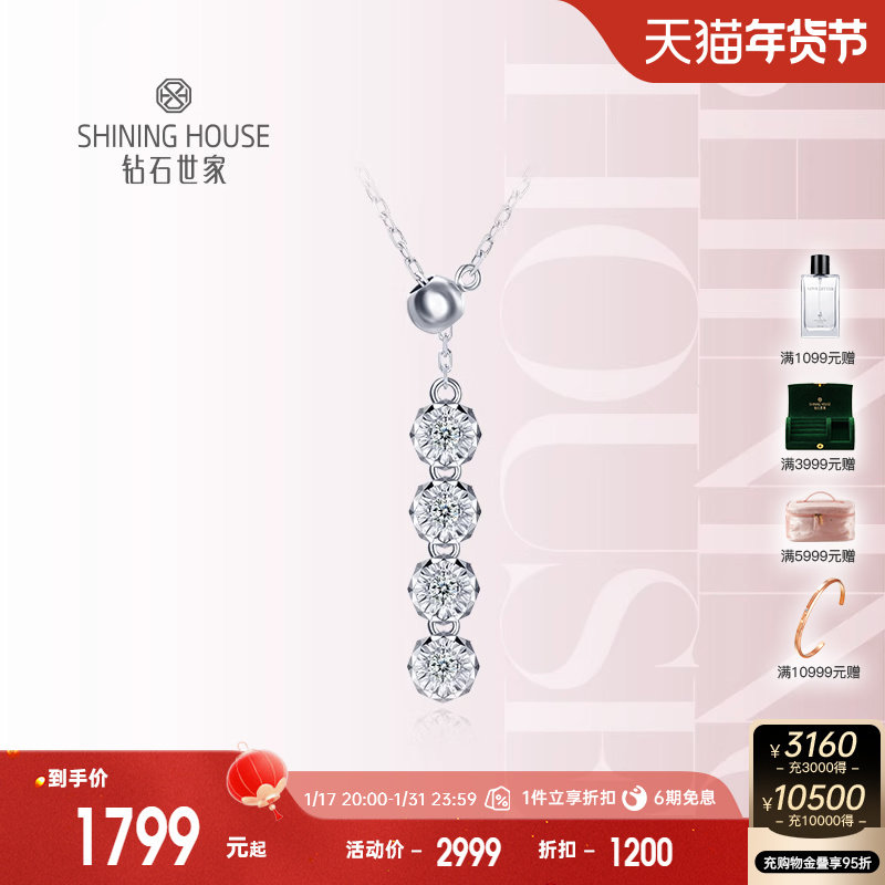 【分期免息】钻石世家18K金钻石项链追光系列吊坠颈饰丝带锁骨链