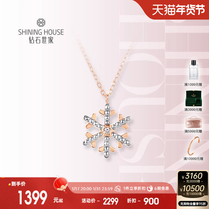 钻石世家18K金钻石项链 简约款钻石吊坠颈饰套链《雪花》