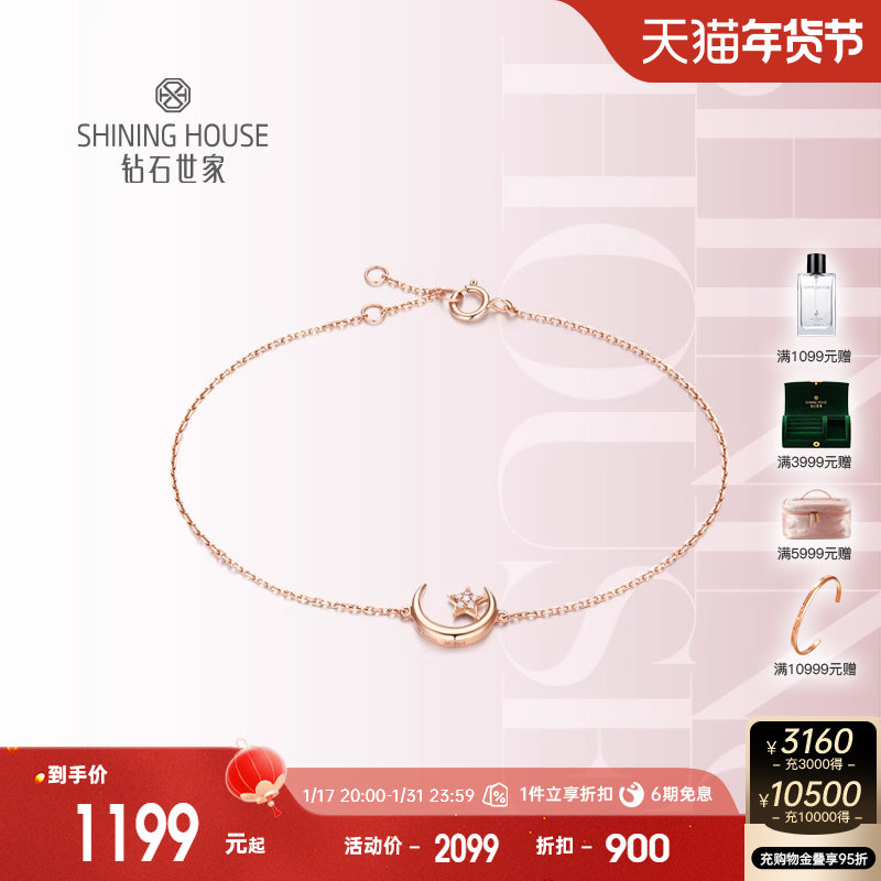 钻石世家 18K金钻石手链女月亮形钻石手饰 简约款手链