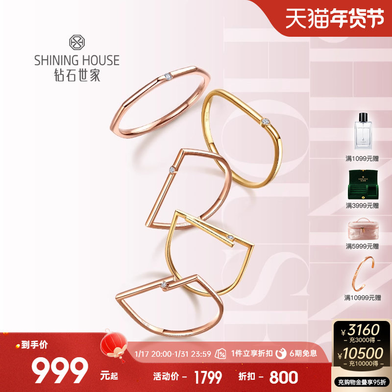 钻石世家18K金钻石戒指 日趣系列不规则线条戒指正品简约