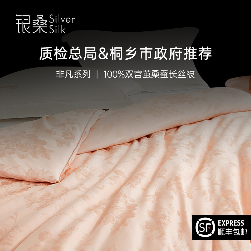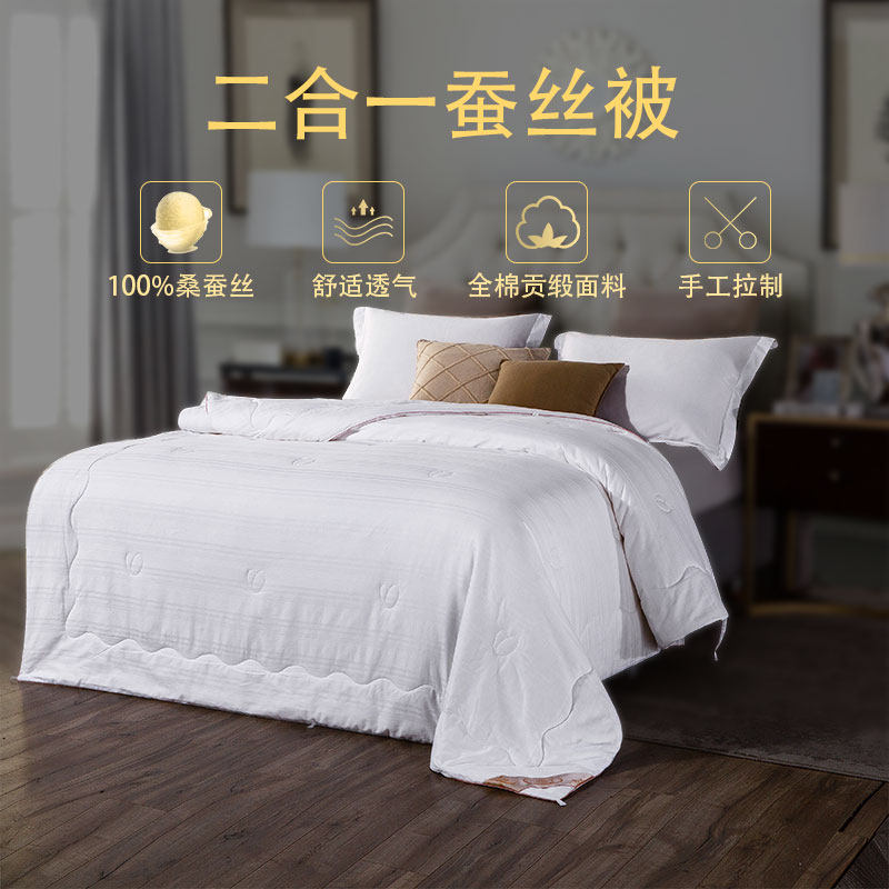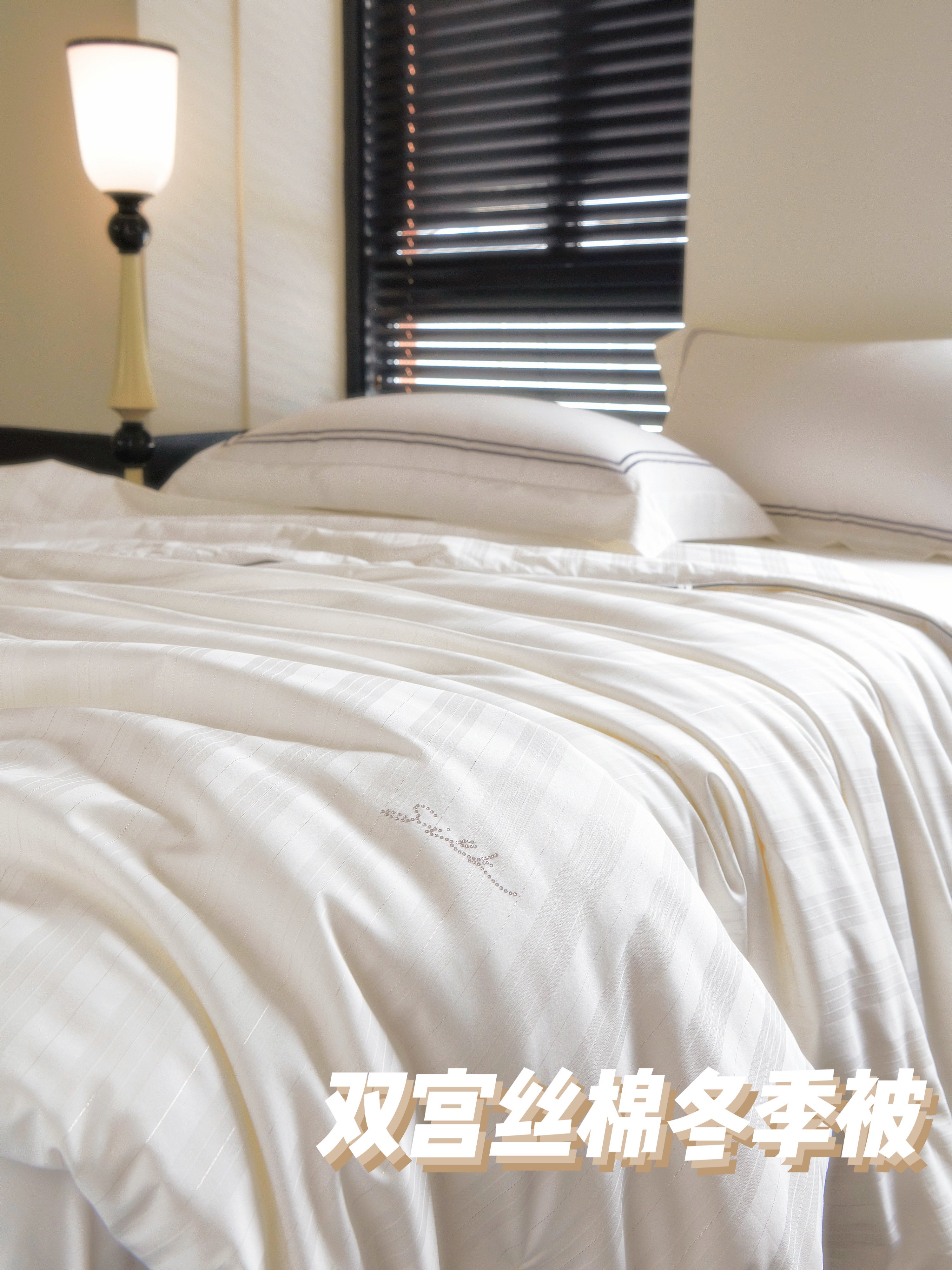 可视双宫桑蚕丝冬被丨 纯棉银线提花全开口设计 100%双宫茧长丝棉